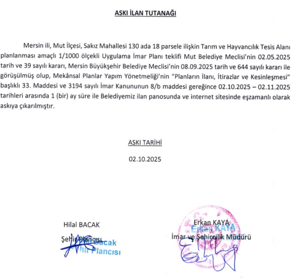 Mut İlçesi, Sakız Mahallesi 130 ada 18 parsele ili...